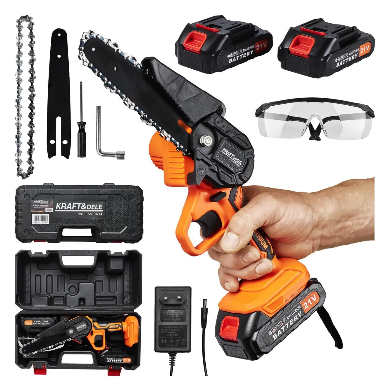 ⚙️ Mark: KRAFT&DELE ⚙️ Mudel: KD10626 ⚙️ Toitepinge: 100–240 V ⚙️ Juhtplaadi pikkus: 190 mm ⚙️ Kiirlaadimine: 1,5 (3) tundi ⚙️ Juhtplaadi tüüp: ketiratas ⚙️ Keti kiirus: 7 m/s ⚙️ Aku: 2 × 1500 mAh ⚙️ Kaal: 2,57 kg