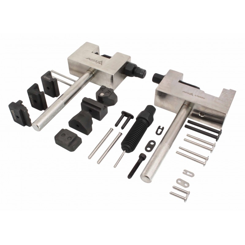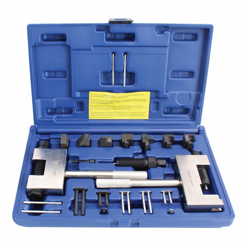 Professionaalne tööriistakomplekt, mis võimaldab kiiresti ja täpselt teostada ajastusketi hooldust, parandust ja paigaldust. Komplekti abil saab ajastusketti eemaldada, kinnitada ja neetida. Sobib kasutamiseks erinevatel Mercedes-Benz bensiin- ja diiselmootoritel ning ka mõnel BMW, SAAB ja Chrysler/Jeep mudelil.