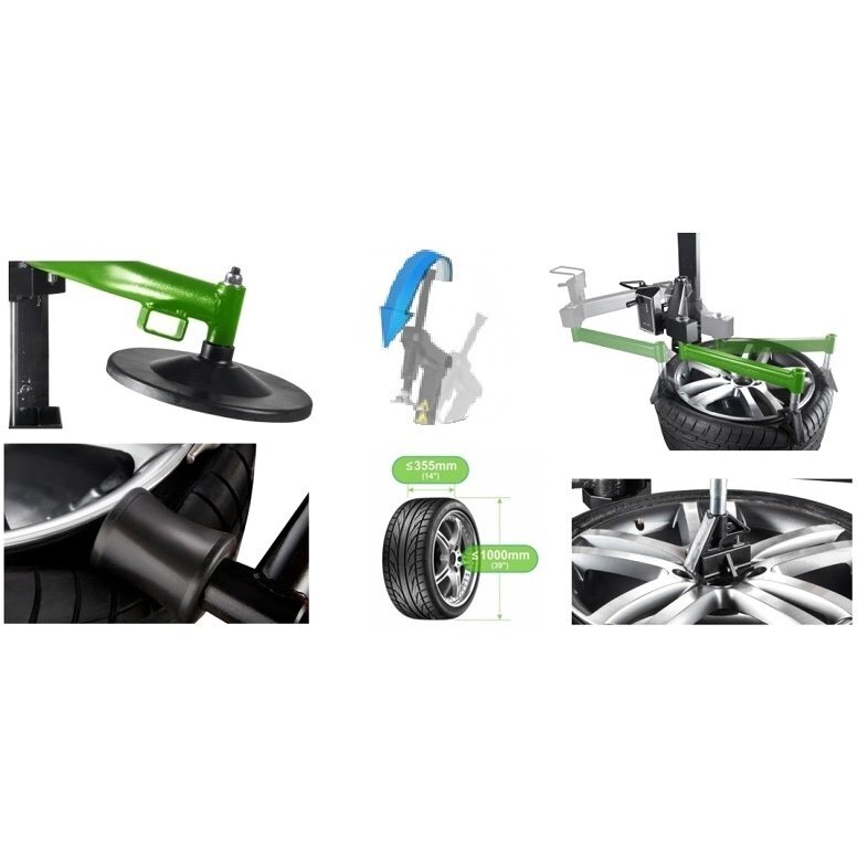 Mootori võimsus 0,75 kW Toiteallikas 380 V, 50 Hz Velje maksimaalne läbimõõt 39" (1000 mm) Velje maksimaalne laius 14" (355 mm) Väline padrun 10" ~ 21" Sisemine padrun 12" ~ 24" Töörõhk 8 baari Rehvi pingutusjõud 2500 kg Müratase <75 dB Kaal 290 kg