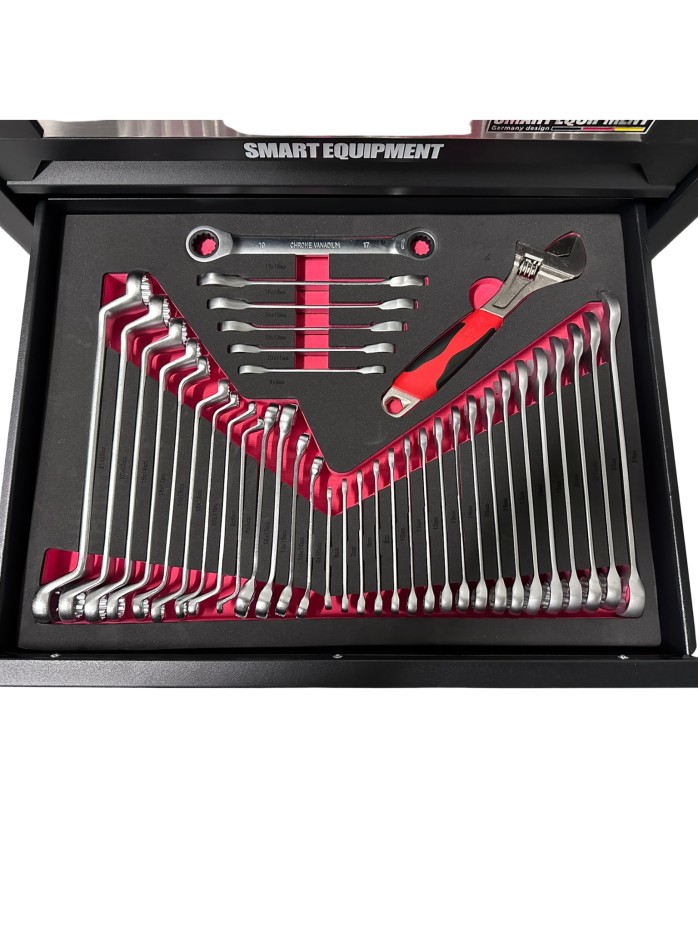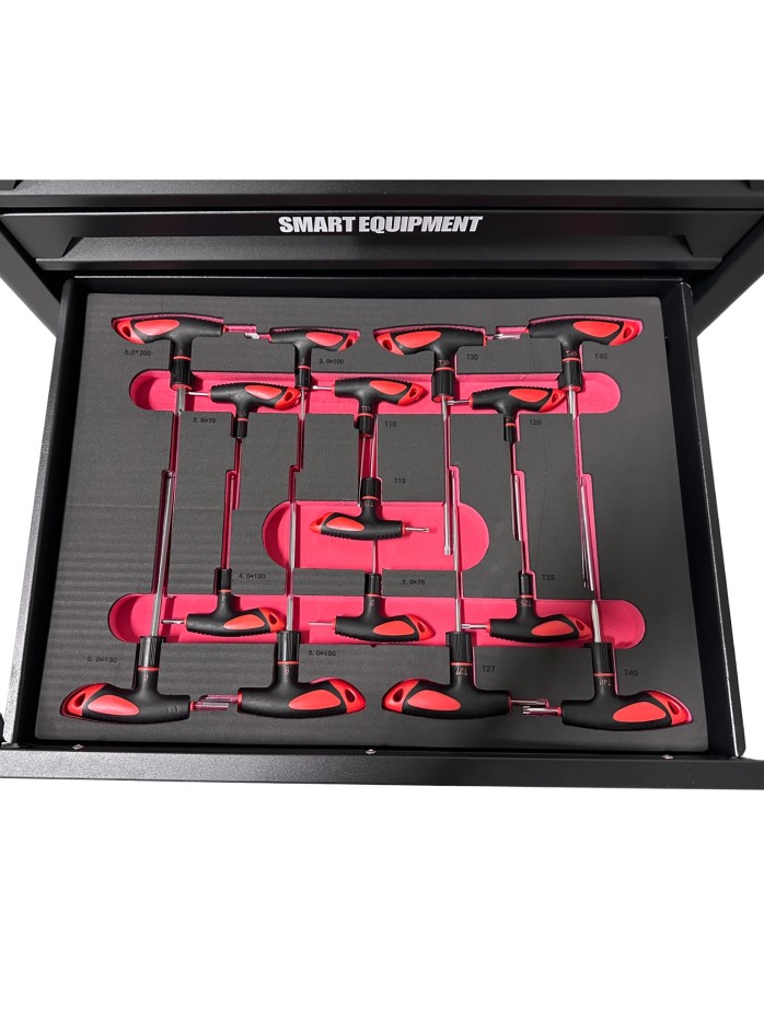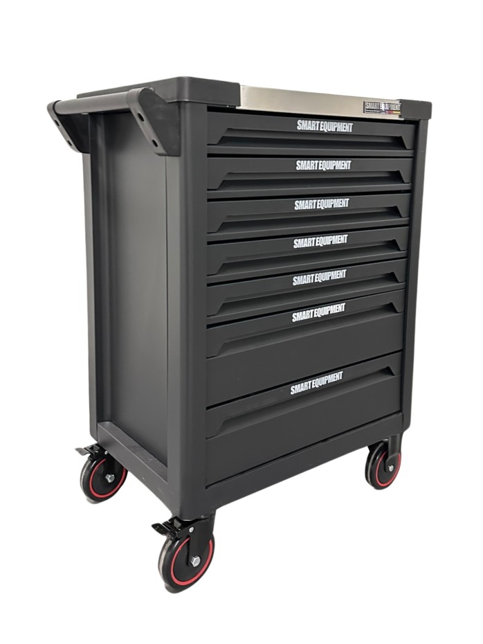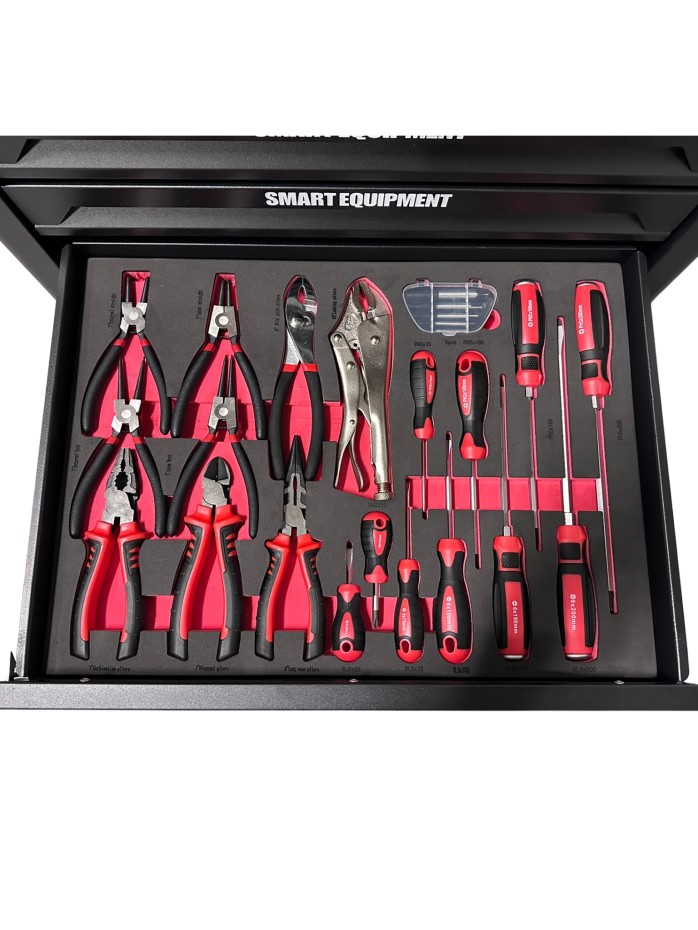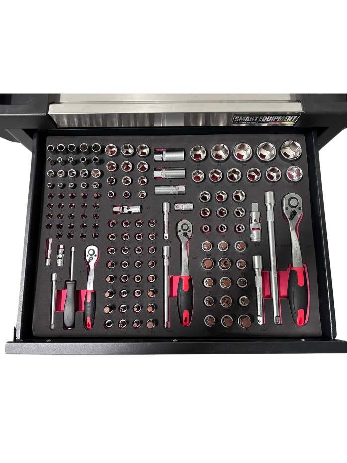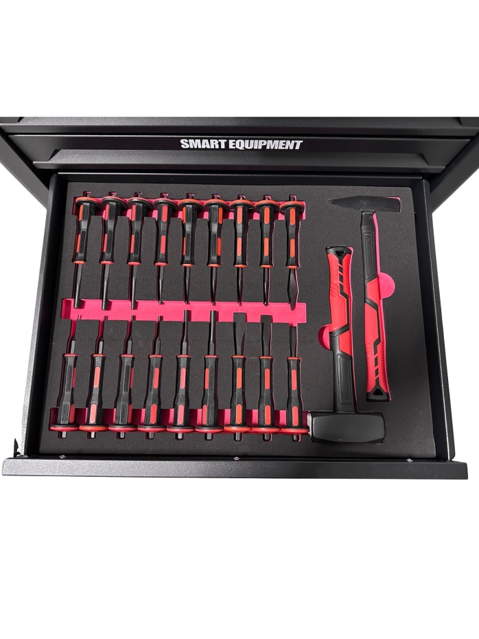 Professionaalne 5-sahtliga tööriistakäru koos 220+ tööriistaga Vastupidavast metallist tööriistakäru, mis sisaldab põhjalikku komplekti padruneid, võtmeid, kruvikeerajaid, tangisid, peitleid ja muid tööriistu. Kõik tööriistad on valmistatud kvaliteetsest Cr-V terasest, mis tagab pika eluea ja töökindluse. Sobib suurepäraselt nii professionaalsele töökojale kui ka kodusele meistrimehele.