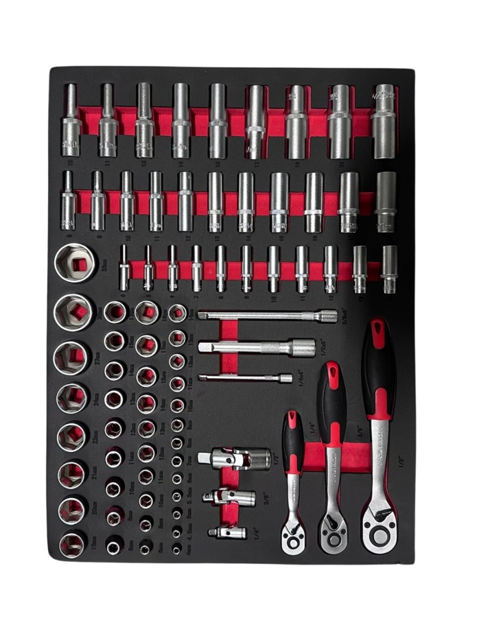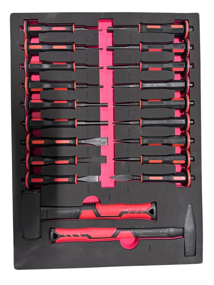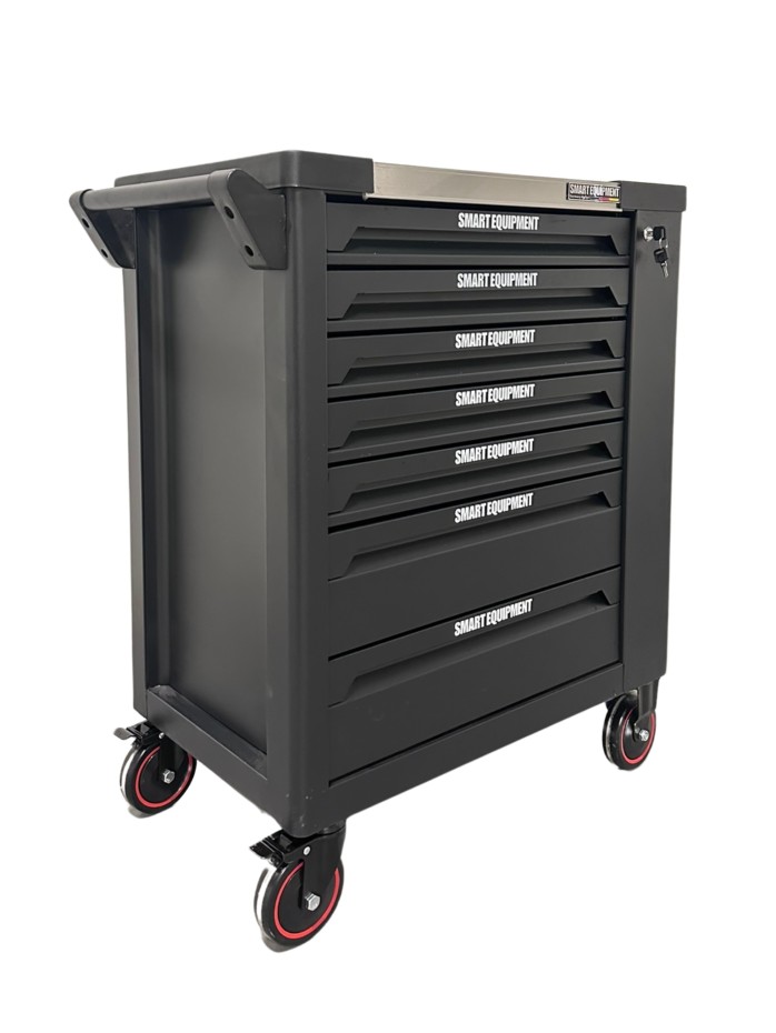 Professionaalne 7-sahtliga tööriistakäru Kvaliteetne ja mahukas tööriistakomplekt tugevas metallist tööriistakärus, mis sisaldab põhjalikku valikut padruneid, võtmeid, kruvikeerajaid, tangisid, peitleid ja muid tööriistu. Komplekt on loodud vastama nii professionaalsete töökojatööde kui ka nõudliku kodukasutaja vajadustele. Kõik tööriistad on valmistatud vastupidavast Cr-V terasest, paigutatud organiseeritult 7 lukustatavasse sahtlisse.