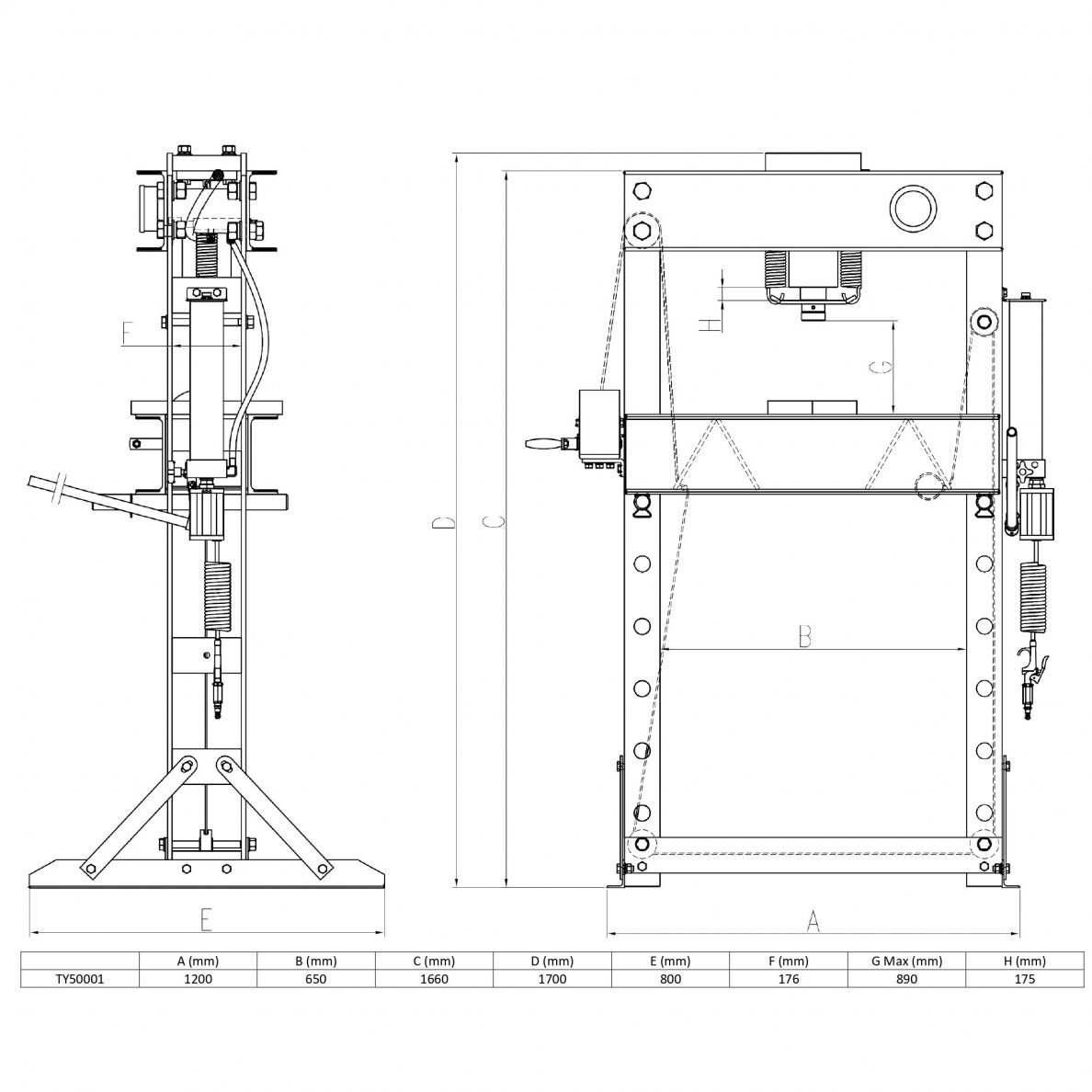 Silindri käik 175 mm Töövahemik 0–890 mm Pneumaatiline ja käsitsi juhtimine Integreeritud kolvi tagastusvedru